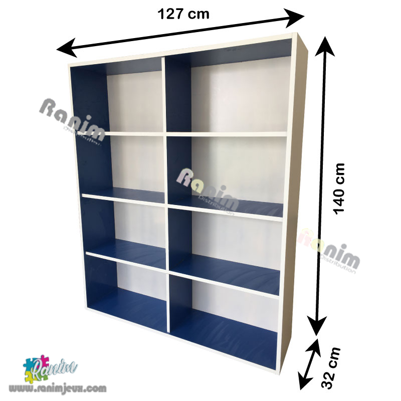 Étagère 8 cases en bois, équipée avec des roues pour un déplacement plus facile.
