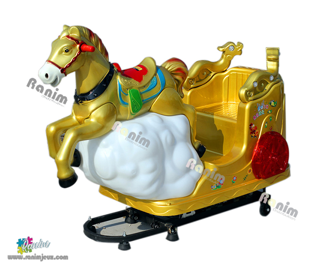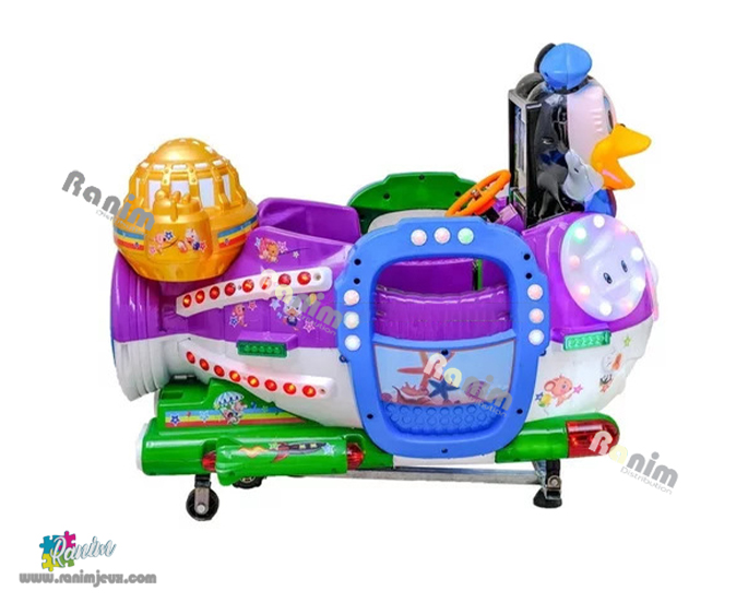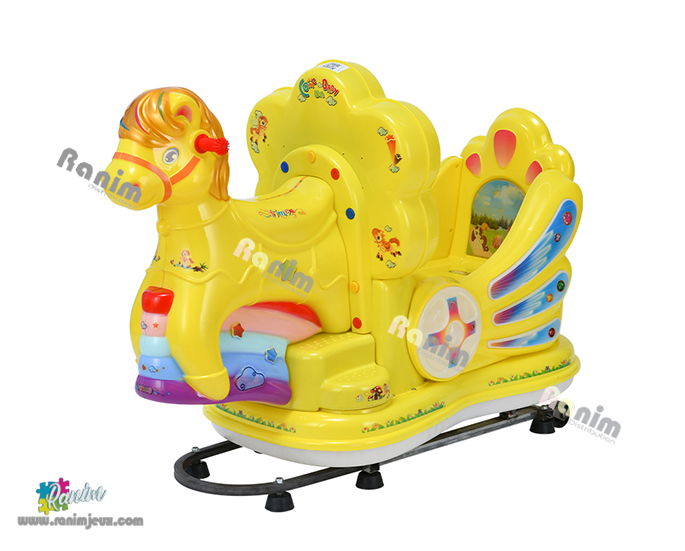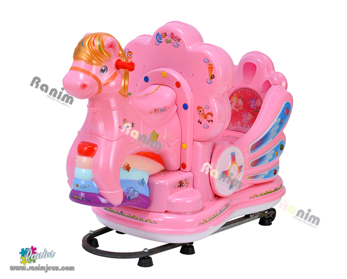 Kiddie ride basculant à jetons d’intérieur de couleur vives.