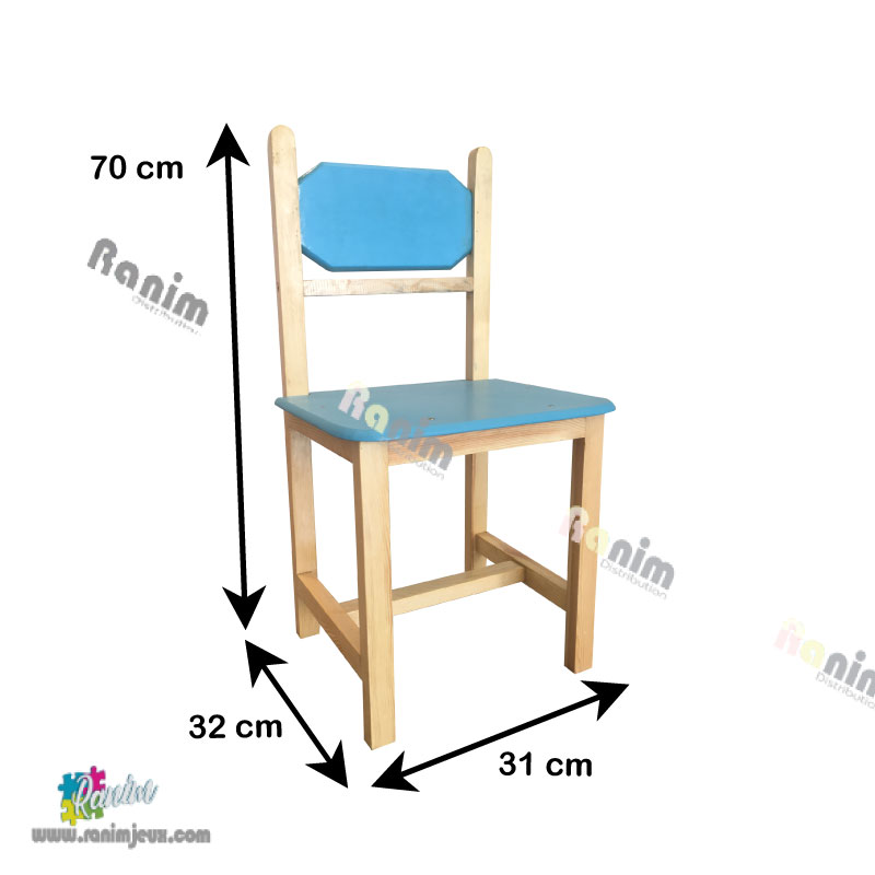 Chaise grand modèle en bois de dimension 70 x 32,5 x 31 cm.