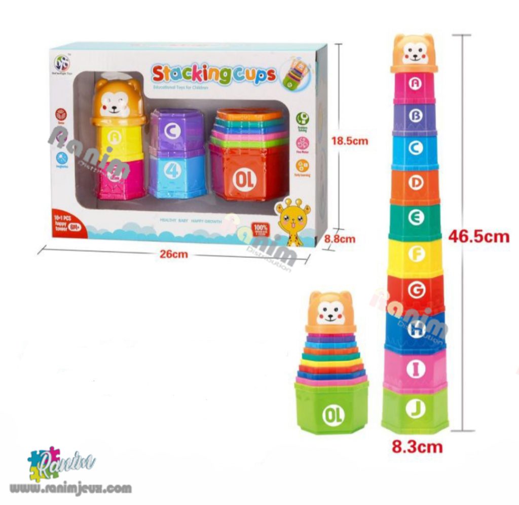 Stacking cups est un jouet tout compris, comprenant des couleurs, des alphabets et des chiffres. Le pack de jouets contient 11 tasses aux couleurs vives qui attireront les tout-petits. La partie la plus attrayante est le joli surmatelas en forme de lapin, qui occuperait les enfants.