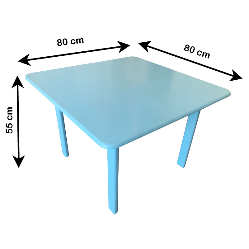 Table en bois carrée de dimension 80 x 80 cm. Disponible en couleur et dessin variées.