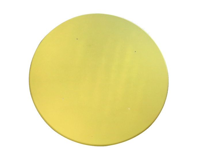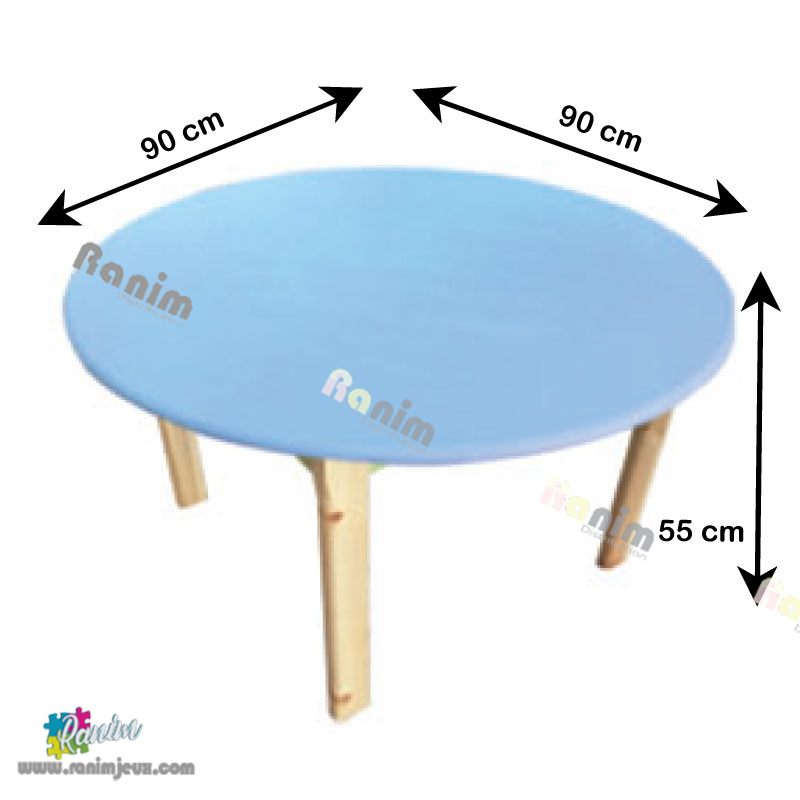 Table ronde en bois de dimension 120 cm. Disponible en couleur variée.